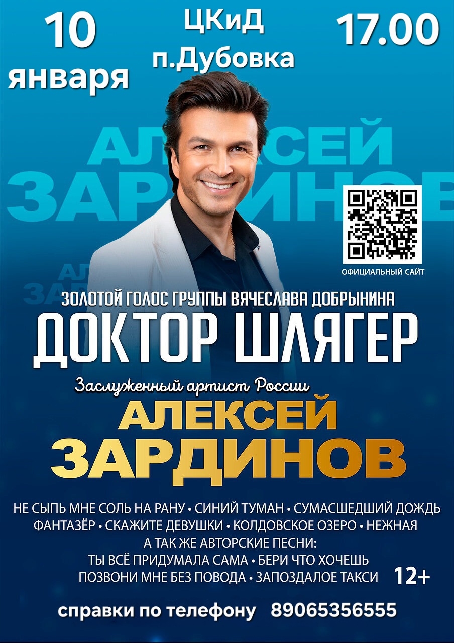 На сцене выступит Заслуженный артист России Алексей Зардинов, известный как "Золотой голос группы Вачеслава Добрынина "Доктор Шлягер"". В программе концерта прозвучат такие хиты, как "Не спи мне соль на рану", "Синий туман", "Сумасшедший дождь", "Фантазер", "Скажите девушки", "Колдовское озеро", "Нежная", "Ты всё придумала сама", "Береги что хочешь", "Позвони мне без повода" и "Запоздалое такси".