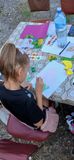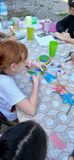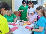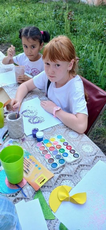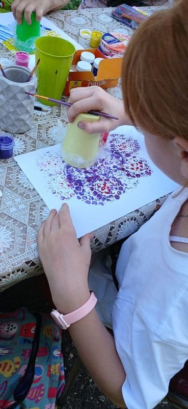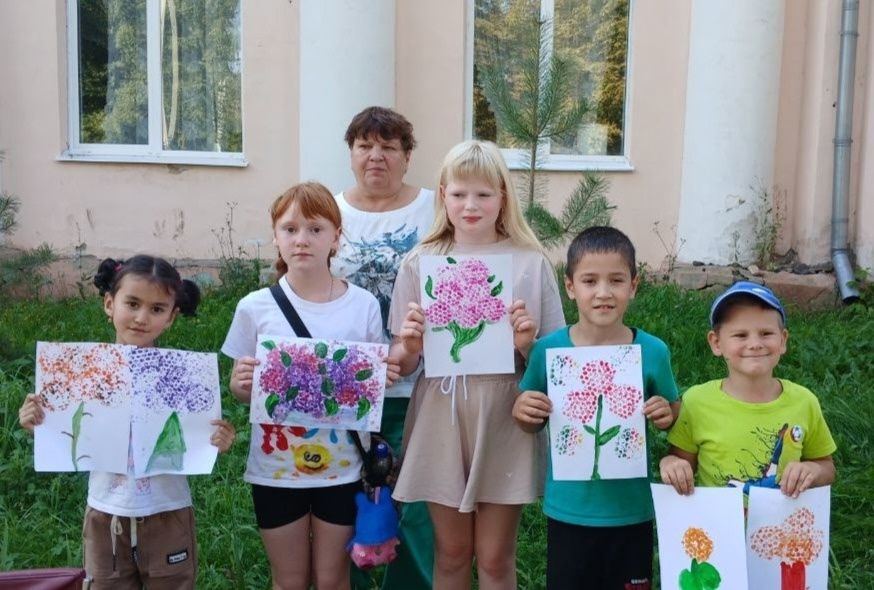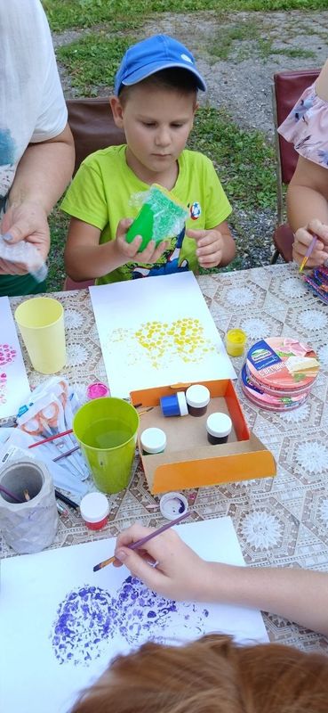 Сегодня на площади Дома культуры п. Партизан прошёл мастер-класс "Рисование гортензии при помощи клеёнки".