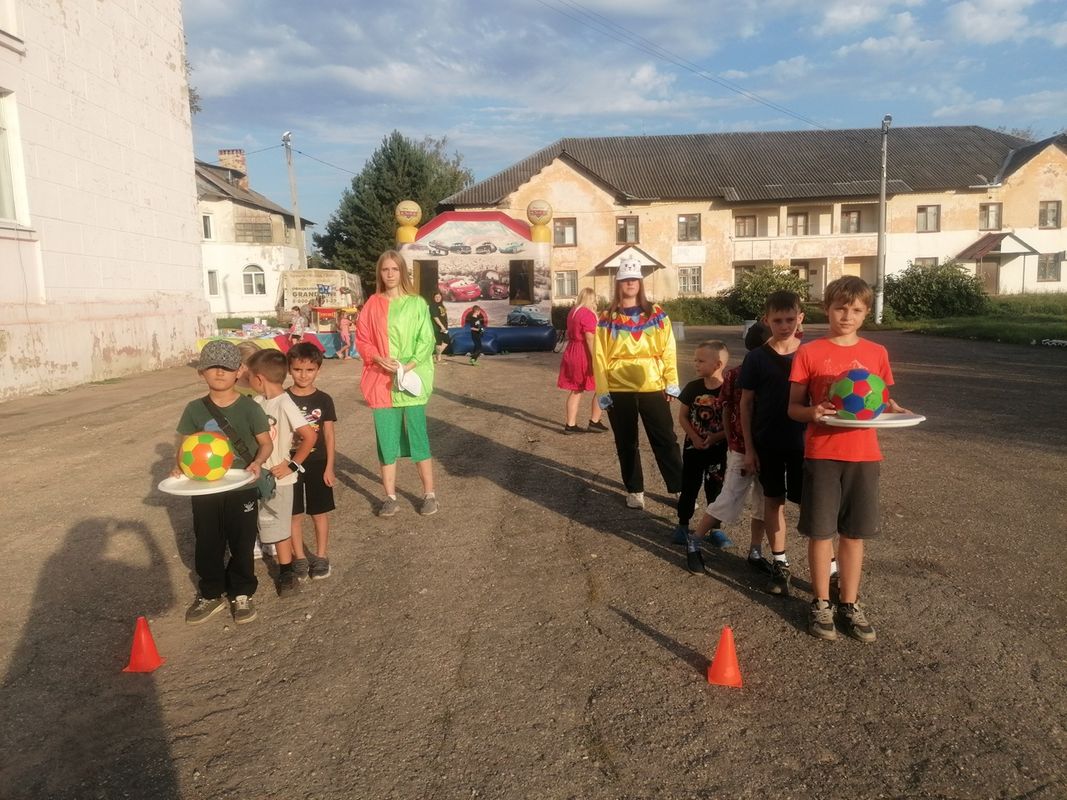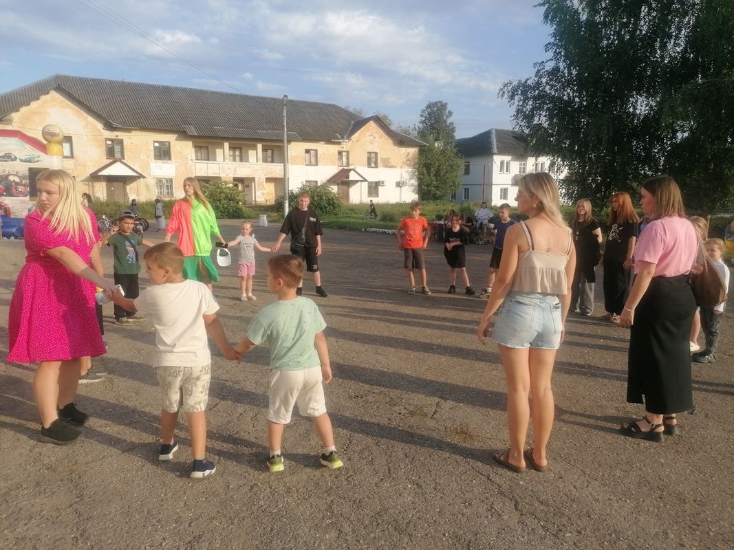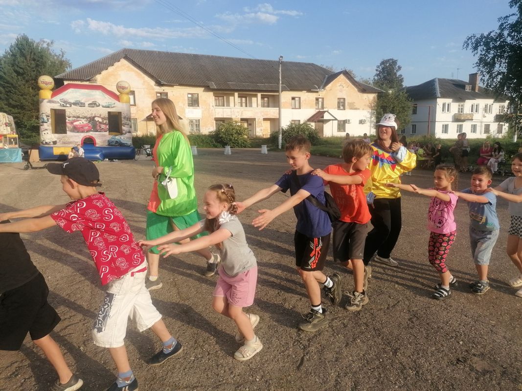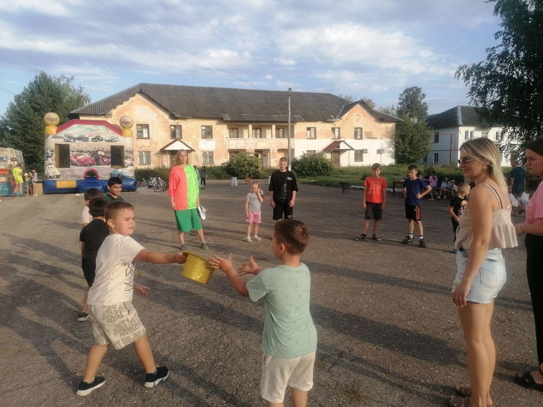 На площади перед ДК, для юных жителей, была организована игровая программа "В кругу друзей", где ребята могли поучаствовать в различных конкурсах и получить приз.