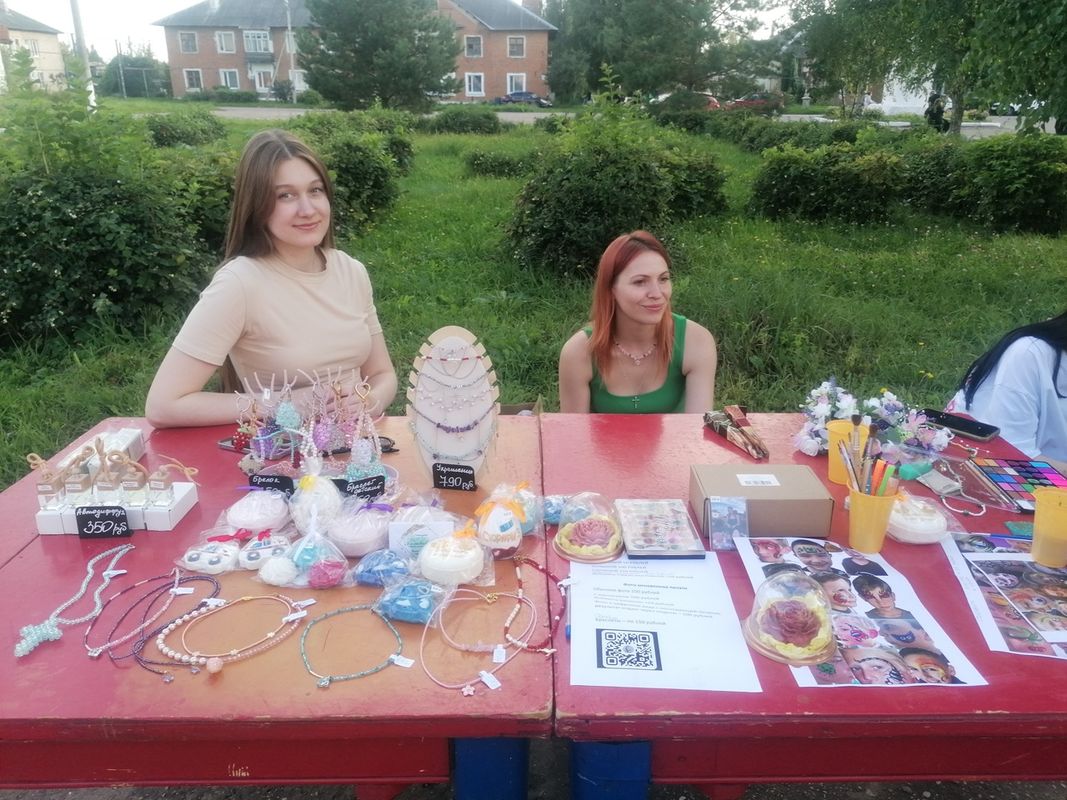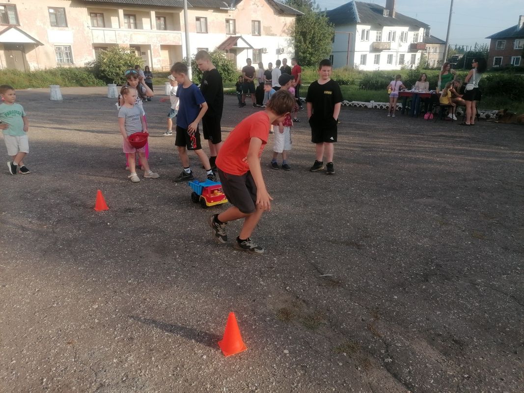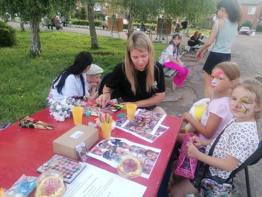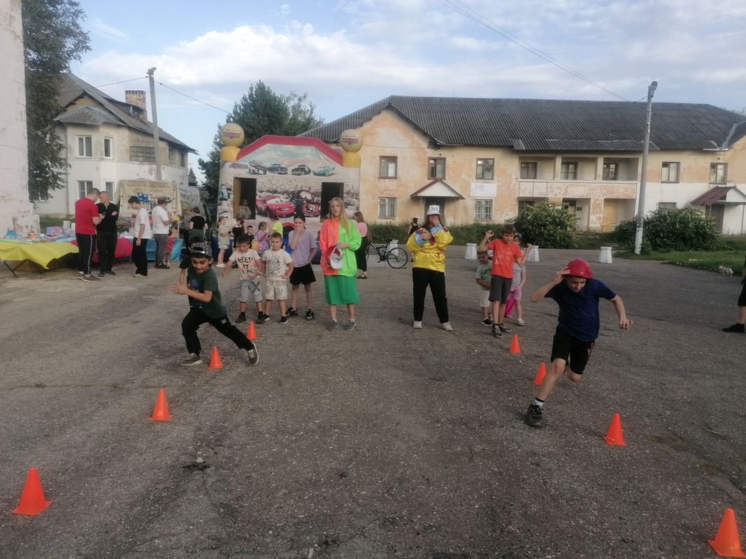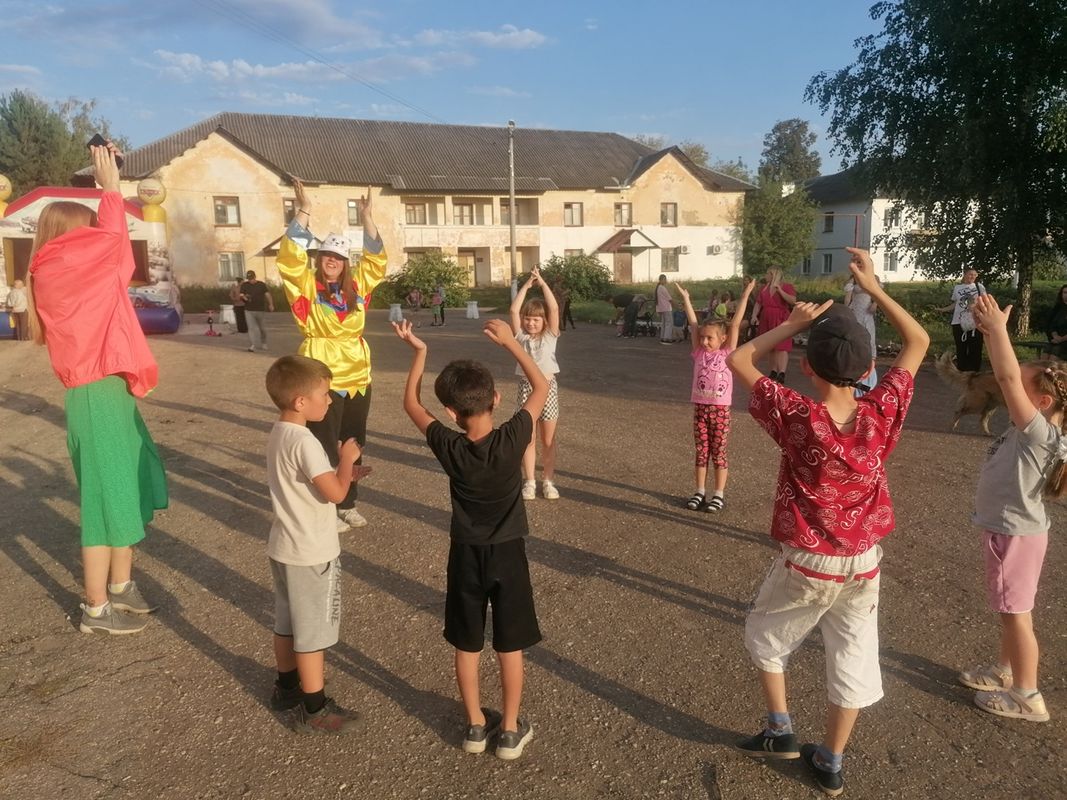 На площади перед ДК, для юных жителей, была организована игровая программа "В кругу друзей", где ребята могли поучаствовать в различных конкурсах и получить приз.