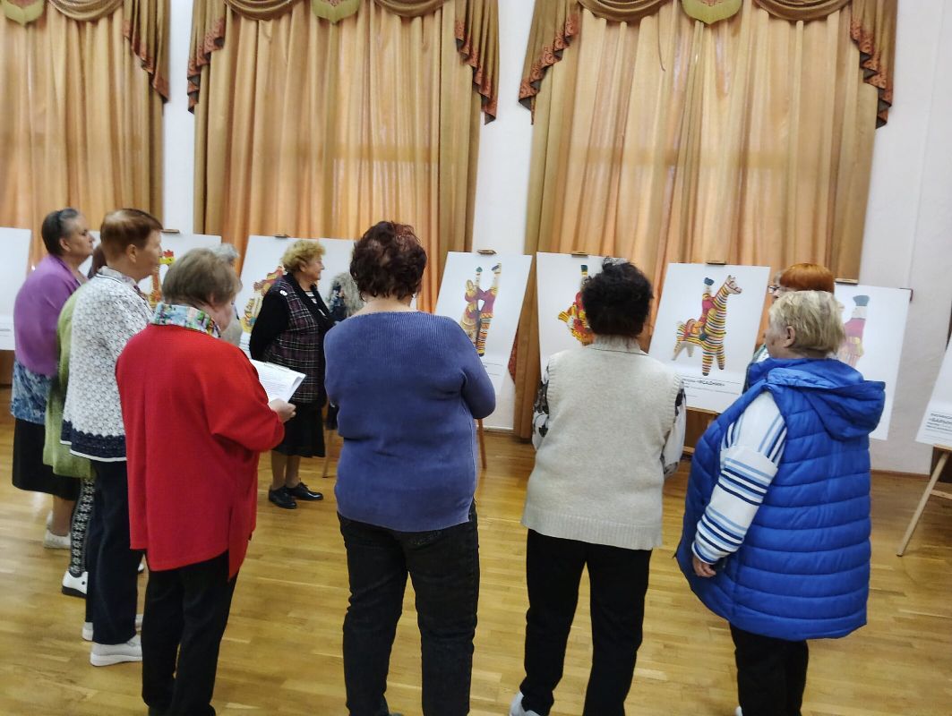 Продолжилась выставка мастер-классом. Дети получили возможность самостоятельно раскрасить эскиз филимоновской игрушки.