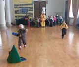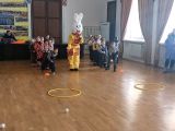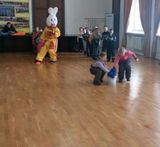 К нам пришли воспитанники МКДОУ д/с №3. Их встретил Зайка и предложил для поднятия настроения поиграть с ним в весёлые игры: зимний хоккей, метание снежков, наряди елочки, построй башню из подарков.