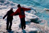 Если неподалеку оказалось несколько человек, надо лечь на лед цепочкой и, держа за ноги друг друга, подвигаться к пролому во льду.