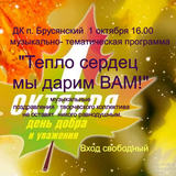 Приглашаем вас 1 октября 16.00 на музыкально- тематическую программу "Тепло сердец мы дарим вам"